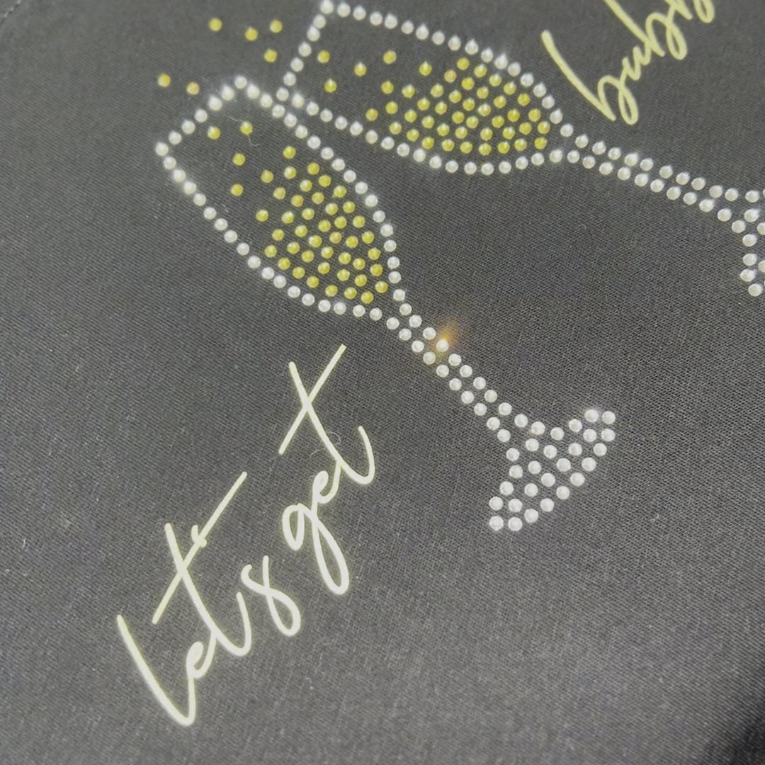 Women's short sleeve t-shirt with Champagne Glasses design decorated with high quality crystal rhinestones. Perfect for bachelorette party!