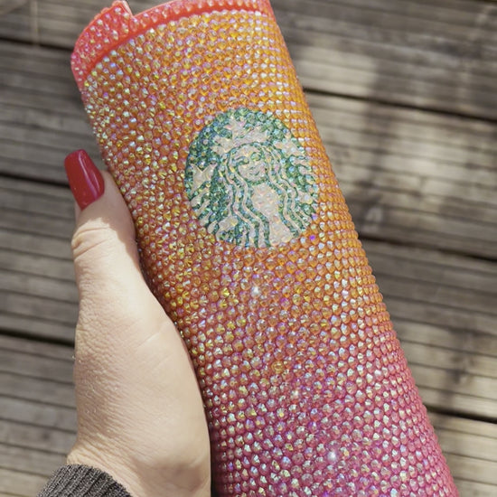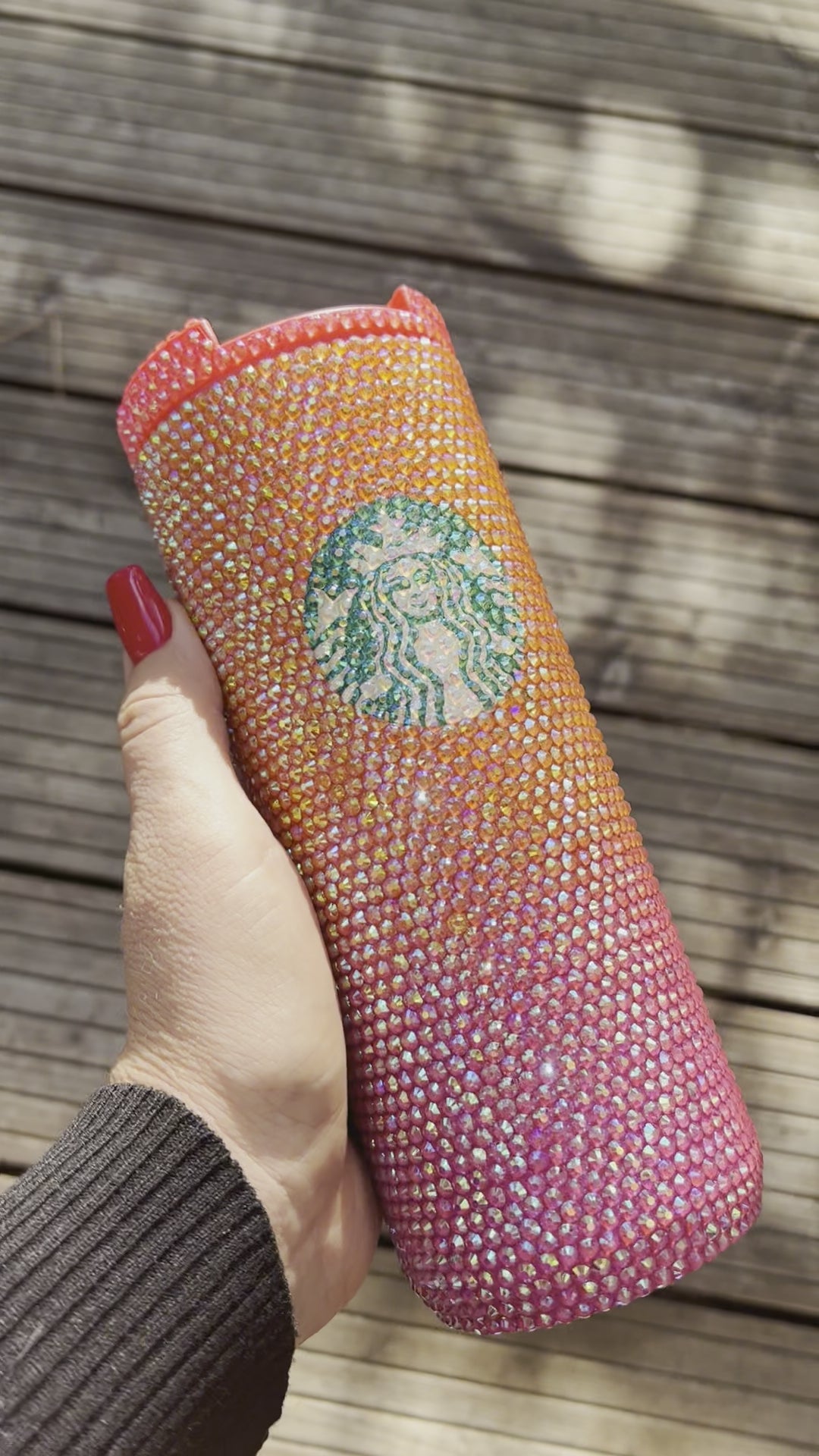 16 oz/473 ml original Starbucks pink&orange ombre tumbler all covered in transparent Jelly Resin Rhinestones